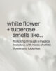 • Senteur : une promenade dans une prairie magique, avec des notes de fleurs blanches et de tubéreuse.