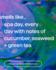 Le parfum Daily Zen, aux notes de concombre, d’algues et de thé vert, vous offre une sensation de détente au spa, tous les jours.