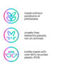 • Ce flacon a déjà une seconde vie. Flacon (sans bouchon) fabriqué à partir de 86 % de plastique recyclé (PCR).