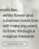 - Parfum longue durée : un parfum évoquant une promenade dans une prairie magique, avec des notes de fleurs blanches et de tubéreuse.
